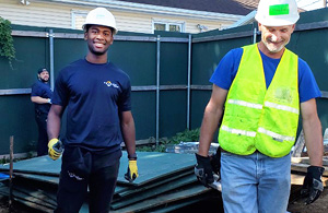 On a hot summer day in South Jamaica, Queens, NY, Petro Home Services of Maspeth team members Rob Dibona, Marco Acosta, Chris Behrens, Jeffrey Hughs, Amaury Mateo, Mohammed Uddin and Anthony Vega from Maspeth, NY joined Habitat for Humanity and other volunteers giving an old house a new lease on life to help local families in need of affordable housing.