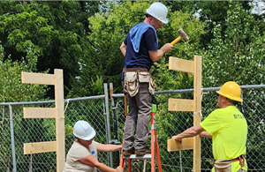 The volunteers – Chris O’Keefe (Service Manager), Justin Peters (Field Service Supervisor), Alison Scali (Regional Sales Manager), Tongwa “Tony” Atem (On Road Delivery Supervisor), along with Service Technicians Joe and James Perkins, Tal Gallagher, Joe Esposito, and Pete Madden – tackled a variety of projects. Their tasks ranged from building wood and ladder racks, working on siding, laying sub-flooring, to hanging ceiling boards.