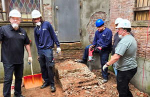 On May 15th, 2025, Petro team members from Maspeth, NY, Anthony Vega, Robert Rella, Chikhou Seck, Michael Milaccio, Alex Milashevich, Robert DiBona, and Mike Gibson joined forces with Habitat to clear the way for new construction. They tackled brick stoop removal, stucco chipping and basement excavation, preparing the space for essential upgrades like new steps, a fresh facade, and updated plumbing.